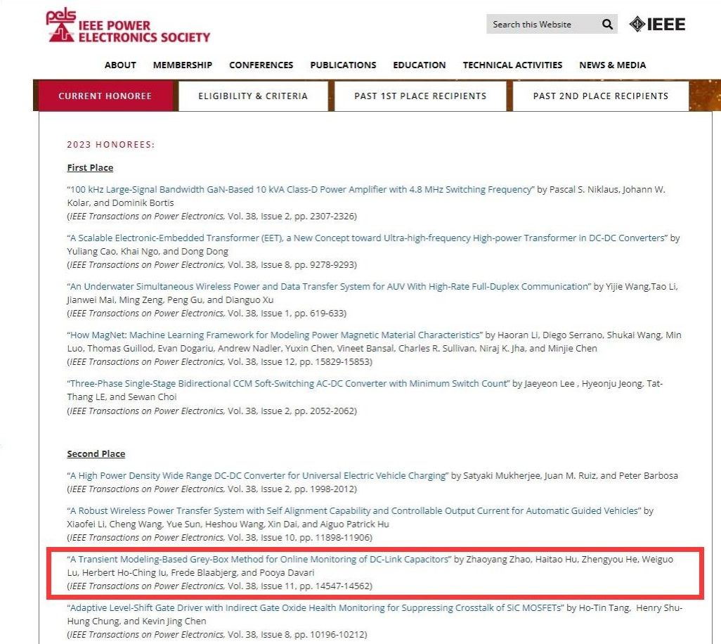 Recently, the IEEE Power Electronics Society (PELS) announced the winners of the 2023 Prize Paper Award for its flagship journal, IEEE Transactions on Power Electronics (TPEL). From the 1,364 papers officially published in the journal in 2023, 5 first place prize papers, 9 sec...