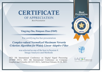 Recently, Prof. Haiquan Zhao's team from the School of Electrical Engineering won the Best Paper Award and Best Presentation Award from International Conference on Digital Signal Processing (ICDSP) and International Conference on Signal Processing Systems (ICSPS). (1) “Best ...
