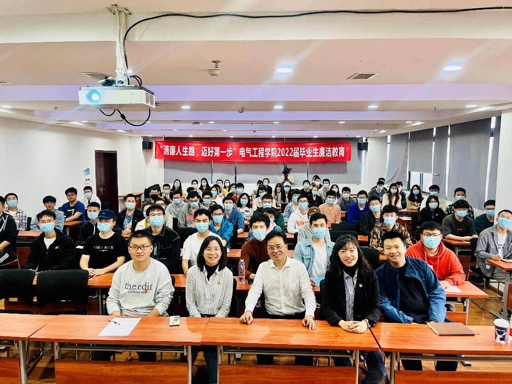 2022年4月14日下午14:30,学校党委副书记、纪委书记张学龙在犀浦校区电气馆X10832为正妹av 2022届毕业年级学生党员代表讲授《清廉人生路,迈好第一步》专题党课。党课由学院党委副书记谢力主持。