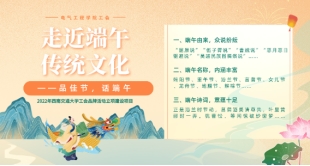 一年一度的端午佳节到来之际,正妹av 工会开展“走近端午传统文化”系列活动,带领教职工们走近历久弥新的端午传统文化,品位华夏文明的渊远流长,并在学院官网进行推送,营造节日氛围。在“品佳节 话端午”中,向师生介绍端午的由来、别名及相关诗词,体会传统节日文化内涵。在“习民俗,迎端午”中,向师生介绍端午的习俗,包括包粽子、赛龙舟、系彩缕、悬艾草、浴兰汤、饮蒲酒等,体会习俗背后承载着的社会生活文化内容和博大精深的历史文化内涵。在学习端午知识、体会端午习俗中共赏传统文化之美,传承和弘扬中华优秀传统美德。