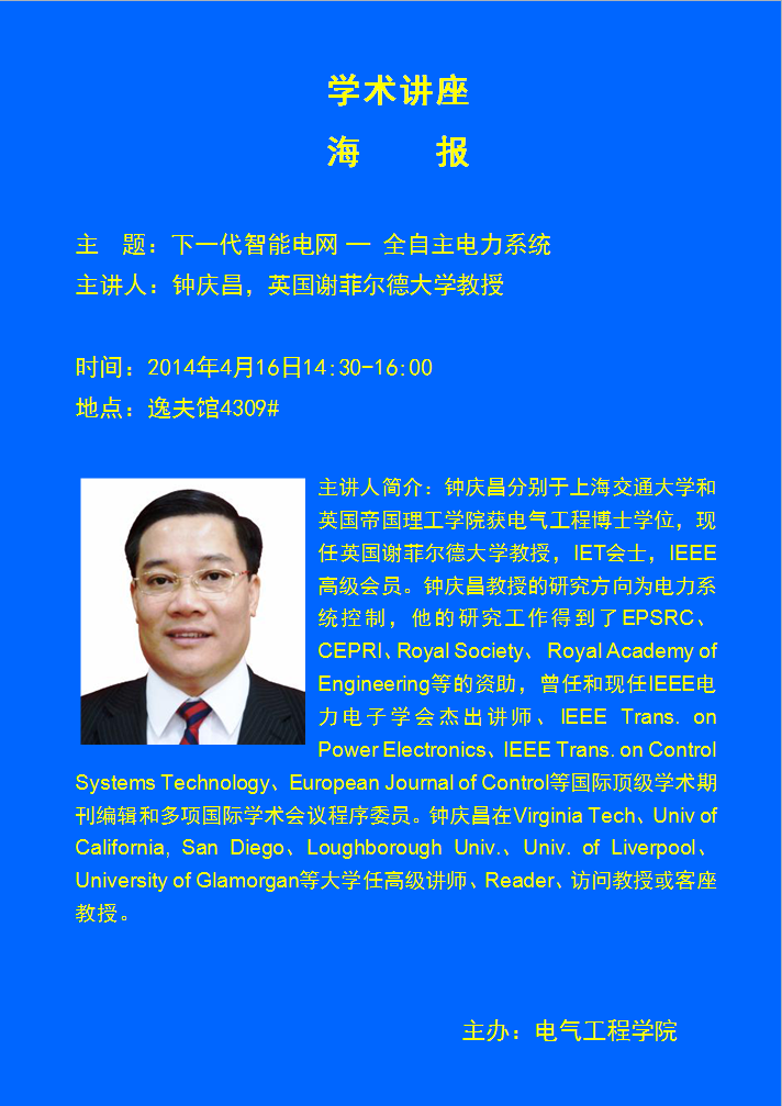 学术讲座——下一代智能电网 — 全自主电力系统