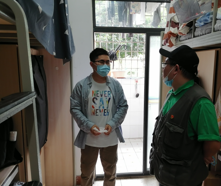 老师们在走访过程提醒同学们要时刻注意防疫工作和宿舍安全,坚持体温监测,避免使用各类违章电器,确保宿舍生活安全有序。