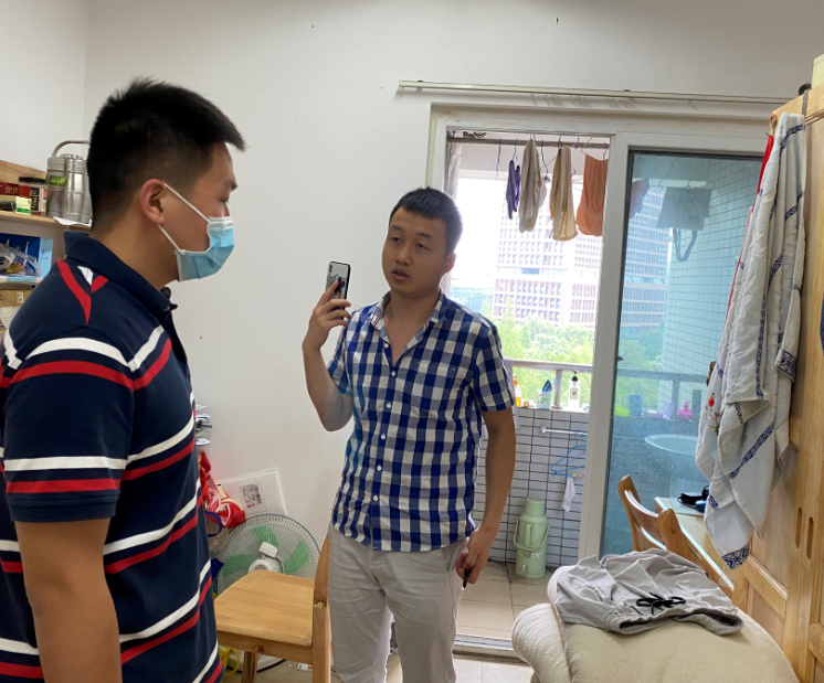 辅导员关怀、孙检和郭冰倩、谭笑走访了位于鸿哲斋4幢的硕2017级男生宿舍和位于鸿哲斋6幢的硕2017级女生宿舍,老师们提醒研三学生在毕业前仍需严格遵守学校各项规章制度,给自己的学习生涯画上圆满句号。