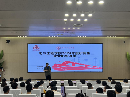 王喆桅指出,近年来,我院研究生就业去向已从过去的“交通-能源”“二元”分布,逐渐演化为“交通-能源-电子-半导体”的“四方”角逐;随着时代发展和技术进步,新材料、新能源日益等成为当下的蓝海行业;而节能、储能以及军工领域也逐渐为我院学子所青睐。电气学院研究生的就业前景整体依然向好,大家要对未来充满信心。