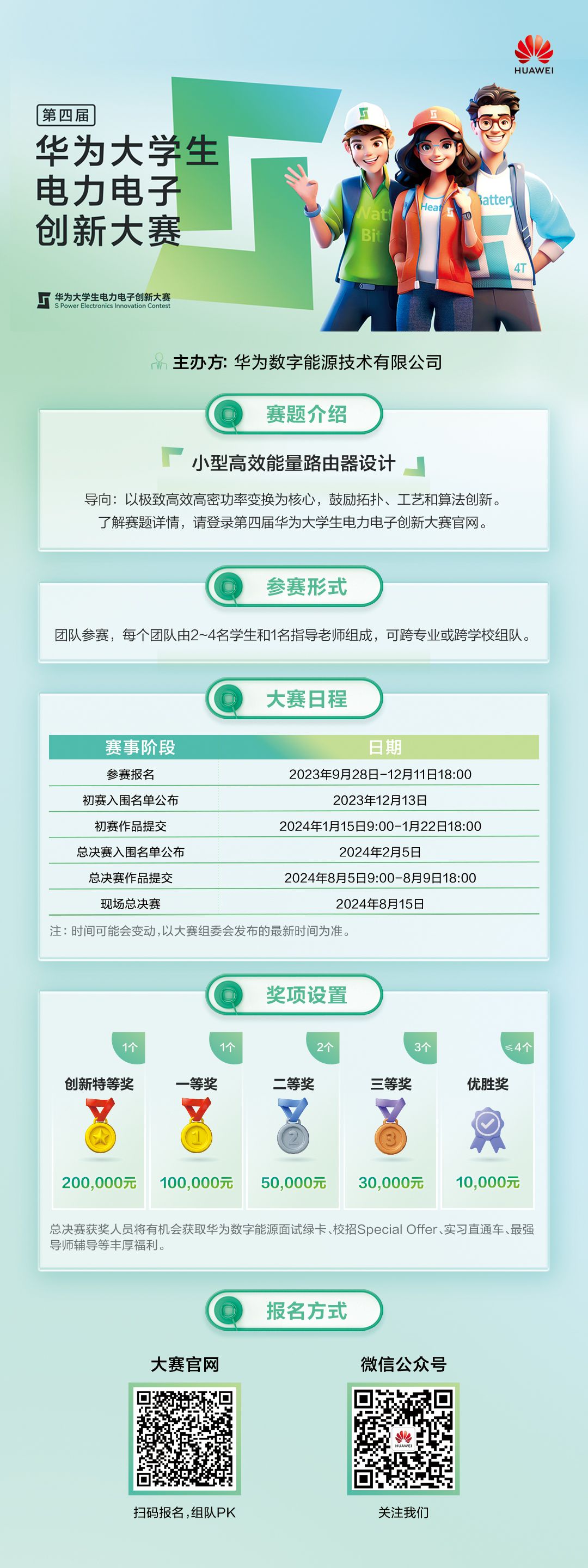 3. 总决赛获奖人员将有机会获取华为数字能源面试绿卡、校招Special Offer、实习直通车、最强导师辅导等丰厚福利。