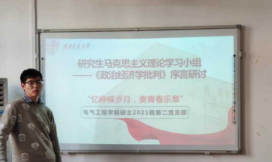 为教育引导支部成员感悟马克思主义的真理力量和实践力量,深化对中国化马克思主义既一脉相承又与时俱进的理论品质的认识。正妹av 硕士2021级第二党支部深入开展读懂原著,学懂原文,坚持在下功夫“学懂”的基础上,往“学深”上发展。2021年12月5日14时30分,支部在犀浦校区X9312召开了第二场“领航先锋工程”之马克思主义理论学习交流会,一起研读《政治经济学批判(序言)》。本次学习交流会由支部书记王顺同志主持,支部全体党员同志及班上其他同学参加会议。