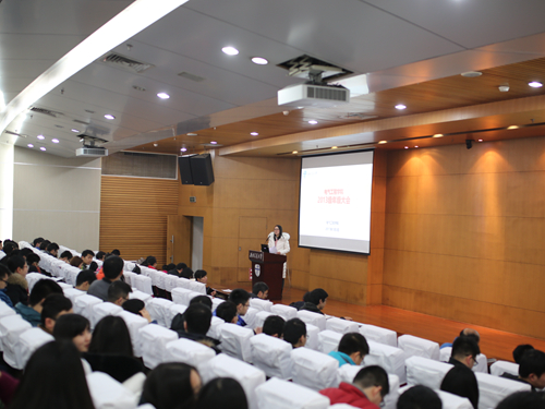 大会开始时,赵院长就“为什么要撰写本科毕业设计论文”这一题目,对毕业论文的重要性做出了相当详尽的解释。他说道,一方面,毕业论文是本科毕业的必要条件;另一方面,在撰写毕业论文的过程中,同学们也能够提升自己的语言组织能力与办公能力,对今后的发展有至关重要的作用。随后,赵院长带领同学们一起解读《本科毕业设计工作规定》,对同学们的毕业设计提出了“独立性”、“科学性”、“价值性”、“规范性”四个要求,希望同学们能按着这四点要求完成高质量的设计。最后,赵院长为大家讲解了毕业设计的时间安排以及文献查询的方法,希望同学们能在假期放松的同时也要注意安排开题报告的撰写。