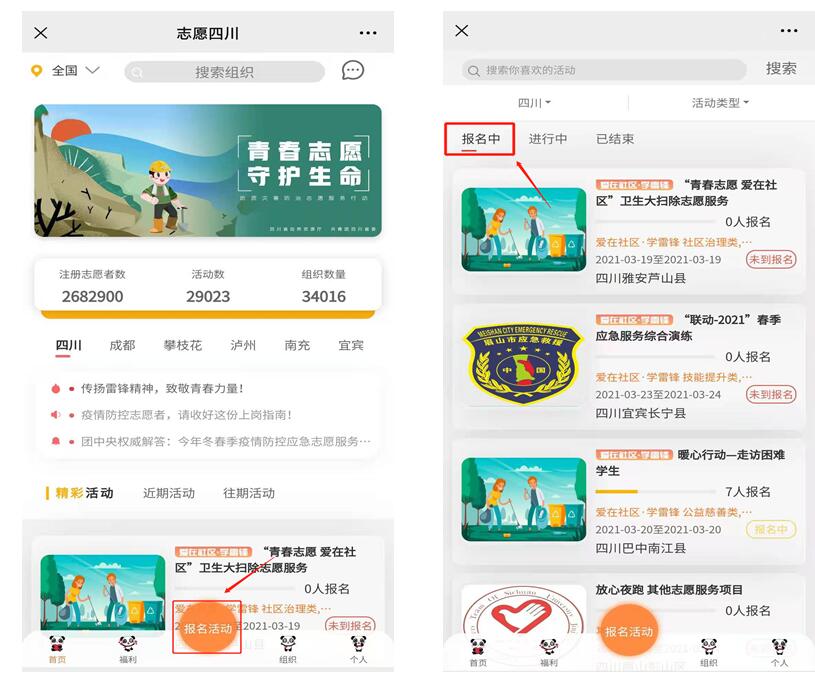 第一步:进入志愿四川平台正妹av后,点击“报名活动”按钮。