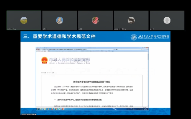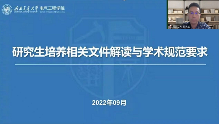 为打造“精勤研途”,传承 “双严”传统,助力2022级研究生新生学业规划,学院于9月8日晚19:30线上开展研究生培养相关文件解读与学术规范要求讲座,副院长陈民武教授主讲。