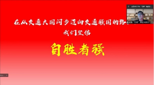 乔宇以《交通强国》为主题,回顾了新中国成立以来我国在交通科技自强之路上艰苦卓绝的奋斗历程,结合切身体会,以独龙江公路、川藏铁路、港珠澳大桥、C919大型客机等鲜明案例,点明新时代我国交通建设取得巨大成就的根本在于以习近平同志为核心的党中央的坚强领导。最后,乔宇号召大家在迈向交通强国的路上坚信自胜者强,在助力中国由交通大国迈向交通强国征程上奋楫争先,阔步前行!