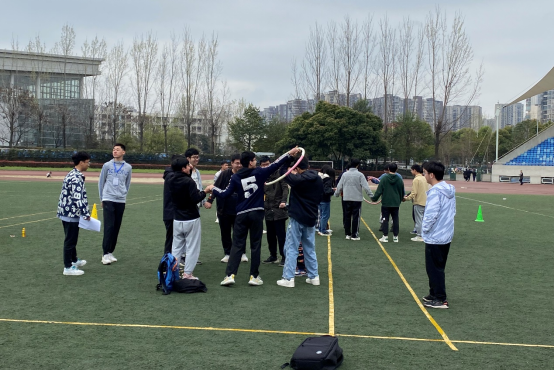 这是一项考验参赛者团结协作能力的运动,如果在内圈的同学太追求速度,那么很有可能让外圈跑的距离长的同学摔倒或者脱手,所以在注重团结协作的同时,也要注意技巧的运用哦!