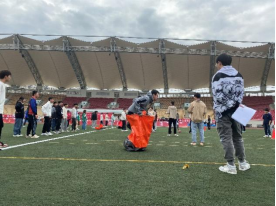 滚雪球比赛规则:同学们需要以第一个出发的同学为首,往返起点和终点,每次拉起一名同学一起奔跑,最终所有参赛同学跑完方可算为比赛成功。