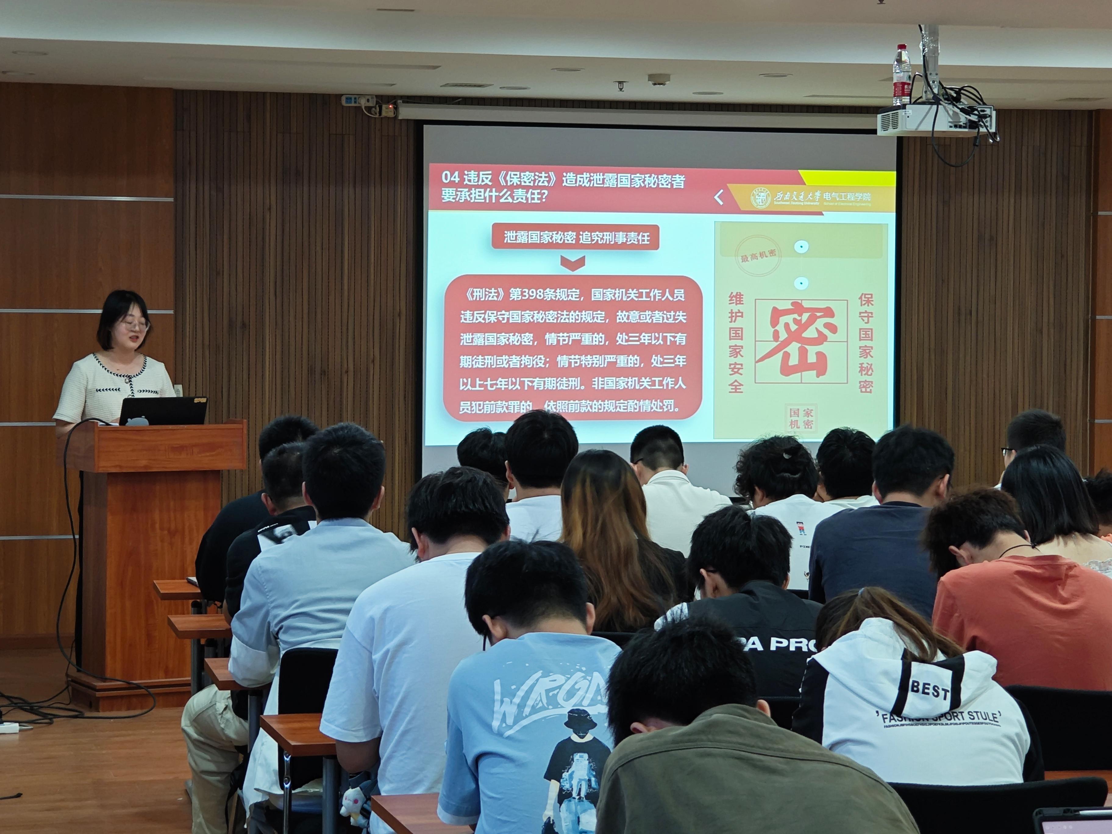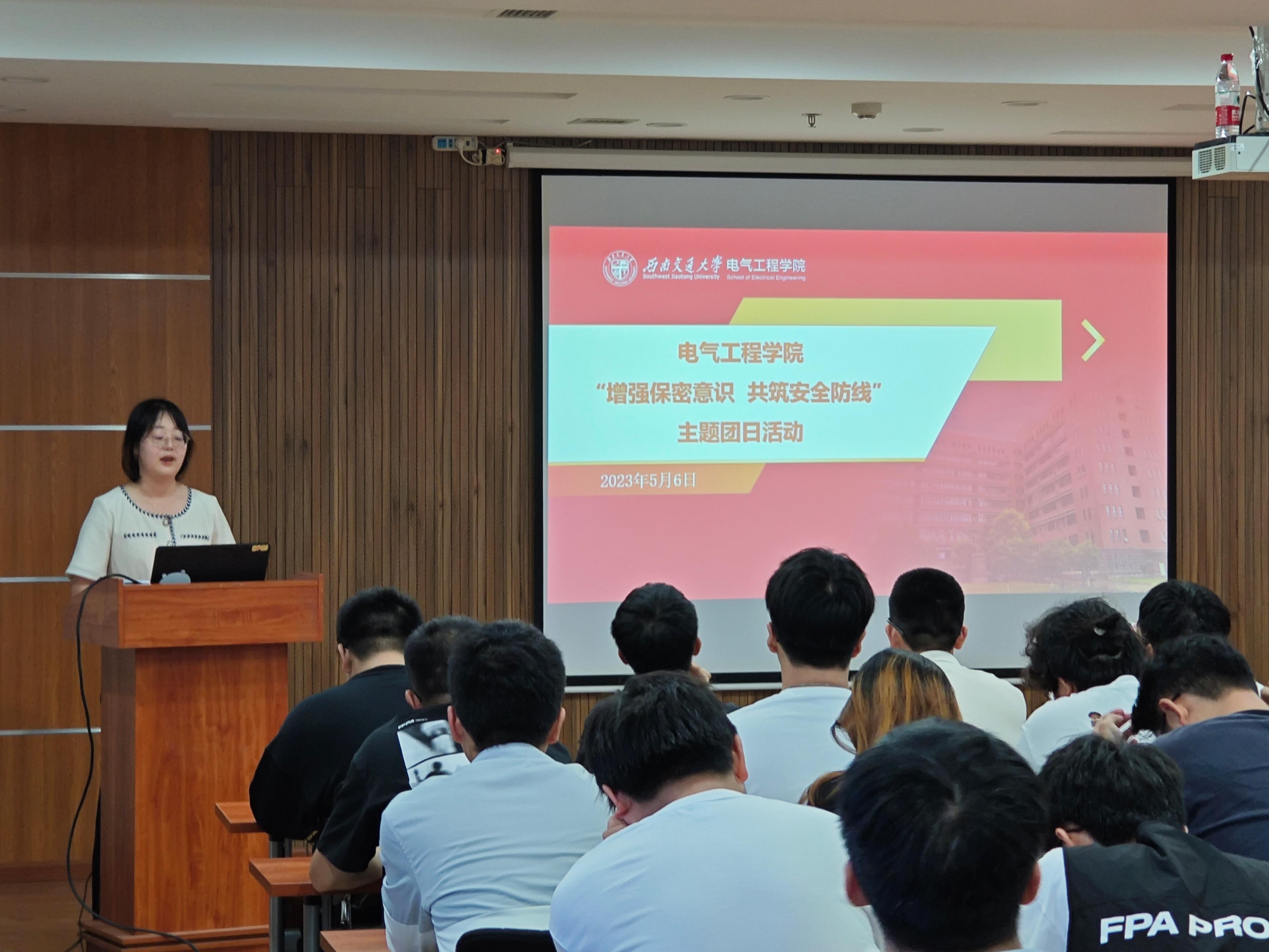 为深入贯彻落实党的二十大精神,切实提升我院青年国家安全保密意识和保密常识,筑牢维护国家秘密安全的校园防线。5月6日晚19时,正妹av “增强保密意识,共筑安全防线”主题团日活动在电气馆10832开展。学院全体团支书、部分党员干部等100余人参加活动。活动由正妹av 团委副书记郭冰倩主持。