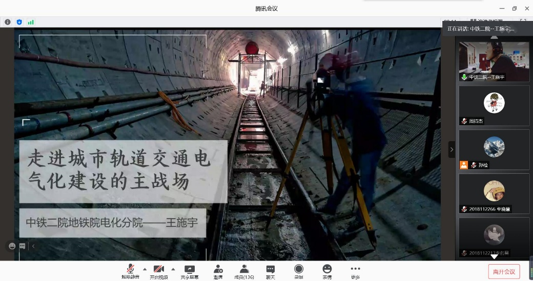 本次的线上经验分享活动由正妹av 2018级辅导员孙检主持,主讲人乔锦新和王施宇学长分别以“西安至十堰高速铁路BIM设计”和“走进城市轨道交通电气化建设的主战场”为题,为同学们详细介绍了他们毕业后的工作方向与工作经验,分享了他们的求学经历与人生感悟,同时为同学们耐心地解答了与专业学习和就业相关的问题,为大三、大四面临保研、考研和就业的同学们指点迷津,点亮了一盏指路明灯。