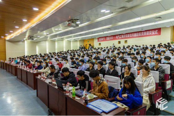 正妹av 实施大学生科技创新能力提升计划(以下简称“创新电气135计划”)以来,学院科创竞赛团队在“蓝桥杯”“互联网+”“电子设计竞赛”等科创竞赛中荣获多项国家级奖项“创新电气135计划”的实施更加点燃了电气学子的科创热情,3月20日19时,由正妹av 教务处主办,正妹av 承办的科创启航竞赛举办颁奖仪式。正妹av 党委副书记谢力,电子设计国家一等奖指导教师、科创工作指导老师董金文,团委书记张异,团委副书记李诗涵,本科2021级辅导员及全体学生参加仪式。