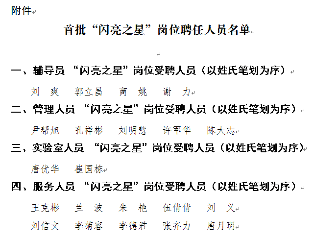 根据《正妹av “闪亮计划”实施办法(修订)》(西交党[2016]45号)文件要求,严格按照相关选拔程序,并经校党委认真研究,决定聘任学校首批“闪亮之星”岗位人员21名,其中辅导员4名,管理人员5名,实验室人员2名,服务人员10名。