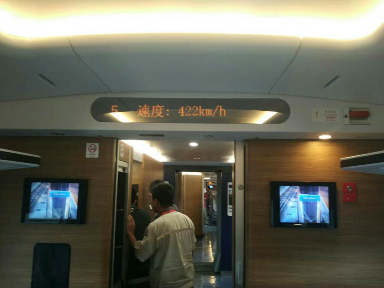 7月15日11:19,两辆中国标准动车组以422公里的时速完成交会试验和重联运行,这是世界上首次利用拟运营动车组进行该试验。参加跟车试验的电气学院研究生李叔恒同学兴奋地说:“速度上来了!中国铁路人的梦想又一次实现!为中国高铁自豪,也为西南交大人自豪,为交大电气人自豪!”他介绍到:“我们团队自2015年8月开始就一直在跟车进行试验,该项试验将在今年年底完成,我们将根据试验结果进行分析研究,提供试验报告,验证设计的合理性,为中国标动优化设计提供依据。”