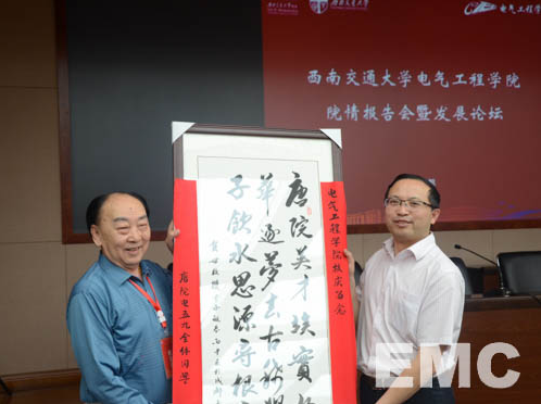 之后陈院长介绍了学院现在科学研究的主要研究方向和近年的主要标志性成果,他强调学院目前正在加强基础学科的建设并且取得了有的成果,他特别提到的就是2015年学院获得的教育部自然科学二等奖,这是学院获得的首个自然科学奖项,依次介绍了高速铁路供电综合监控技术及装备、牵引供电关键设备安全运行检测技术、中低速磁浮列车技术、电气化铁路同相供电装置-世界首创、节能型牵引变压器-世界首创、轨道交通模拟驾驶仿真培训系统、牵引供电电气设备检测与检测系统、燃料电池混合动力系统、无线感应供电技术、复合材料接触网支持结构等研究成果。一项项优秀的成果无不展示出电气学院蓬勃的发展力与强大的创新力。科研成果的成功离不开学院教育教学方面的建设成果,它既包含学院教育质量建设成果,学生竞赛获奖情况优异,并且学生就业率一直保持在99%以上。可见学院不仅在科研方面取得突破,教育教学也成果丰富。