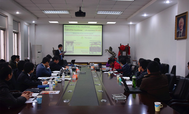 马磊副院长代表电气学院对东日本公司的到来表示热烈地欢迎。东日本铁路公司Dr.Hitoshi Hayashiya针对日本牵引供电系统的热门话题进行介绍,展示了日本铁路的发展现状及再生能量利用技术,并简要地说明了中日在铁路方面合作的重要性,而这是Dr.Hitoshi Hayashiya第四次来我院进行学术交流。随后,电气学院周福林老师向到访者展示了电气化铁路高次谐波的治理技术。