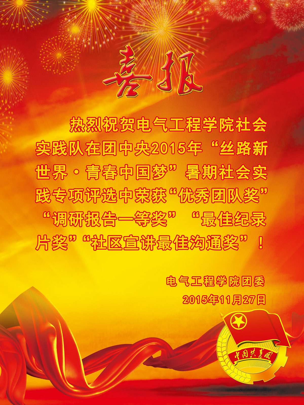我院社会实践队在团中央2015年专项评选中喜获佳绩