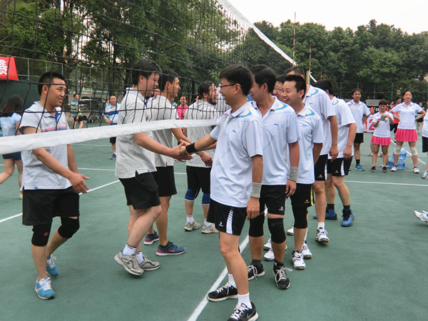 双方队员交换场地后,第二场的比赛开始了。电气学院挟首场胜利的强大气势,一开始就打了对手一个措手不及。虽然后勤男队在后期调整了状态,已然无力挽回颓势。第二场比赛电气学院以25:15的大优势再次取得了胜利。至此,电气男队在排球赛中已取得5连胜的辉煌战绩,无疑是教职工排球赛的最大黑马!期待电气学院在以后的比赛中能够以这种过关斩将、势如破竹的气势取得最后的胜利!