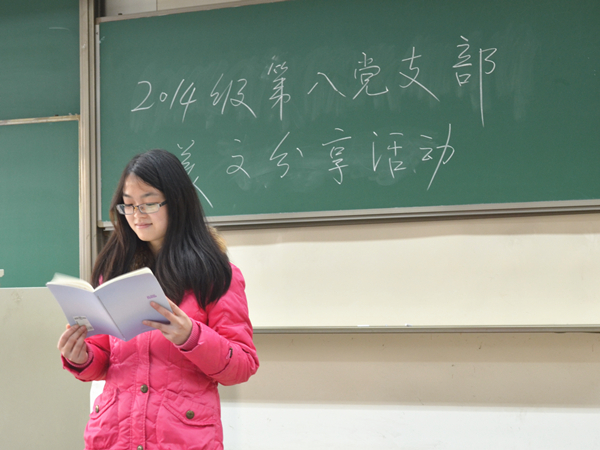 12月21日上午11:30,正妹av 研14级第八党支部在逸夫馆4223举行了“运动健体魄,美文感人心,朗诵抒情怀”系列校级示范党支部特色活动之“书香四溢,我为支部荐好书”的美文分享活动。活动旨在帮助同学们养成良好的读书习惯,掌握正确的读书方法。支部成员齐聚一堂,对本学期经典阅读情况进行汇报,交流心得,分享感受,学习方法。
