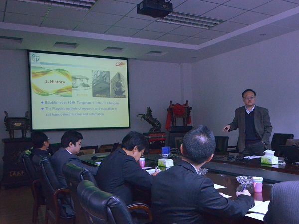 东日本铁路公司一行主要就JR-EAST’s电力设备情况,牵引供电部门工程师的技术培训,通过铁路功率调节器(RPC)实现再生功率的有效利用的研究,隧道中瓷绝缘子污损的研究,升压变压器接地故障的研究,架空接触线的材料腐蚀研究,非接触供电技术在铁路应用上的研究,阴影条件下太阳能光伏阵列效率改善的研究,向与会人员作了学术报告。