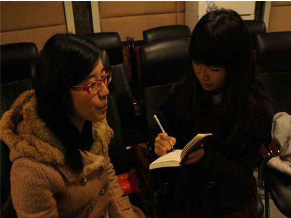 首先吸引记者眼球的便是现场着装美丽,光彩照人的礼仪小姐。记者随即对礼仪组杨寒卿同学进行了采访。当被问到会场温度并不是很高,你们是怎么克服这个困难的时,杨同学不禁捂住了嘴笑了起来,她说:“其实这个问题一半靠装备,一半靠毅力。我们都有贴暖宝宝,并且穿了很厚的内衣,但是还是要靠自己的忍耐力来坚持一下才行。”看来不“冻人”还真的是没法美丽啊。在观看晚会的过程中记者注意到本次晚会活动中的奖品非常丰厚,便向杨同学请教设置如此丰厚奖品的初衷是什么,杨同学言简意赅的说道:“当然是要体现学院对同学们的关爱了,当然这么做也可以增加同学们互动的积极性嘛。”说完杨同学又露出了招牌微笑,为略寒冷的会场增添了不少温暖。