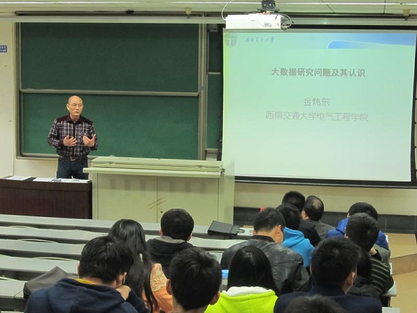 2014年11月18日下午15:50,《电气工程与控制工程前沿科技》系列报告之七——《大数据的认识》在九里校区逸夫馆举行。本次讲座由电信学院金炜东教授报告,电气学院陈维荣书记主持。