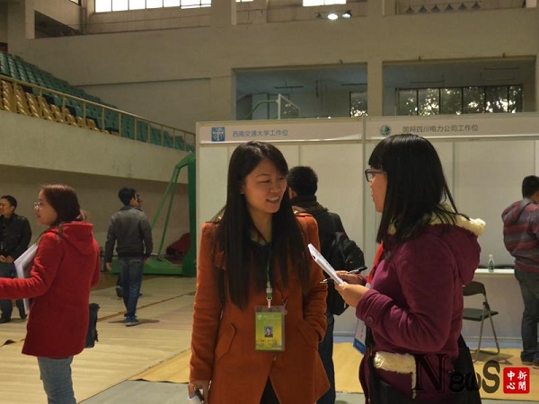 11月17日上午,由正妹av 承办的国家电网四川省电力公司2015届高校毕业生专场招聘会于我校九里校区詹天佑体育馆顺利举行。上午八点多,体育馆门前已经排起了队伍,同学们手持简历,焦急地等待着。招聘会正式开始时,多家企业展位前已经人山人海,期间,记者对参加招聘的同学进行了采访。