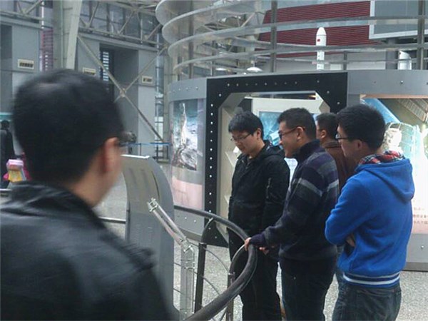同学们首先来到航空航天展区并依此参观了位于展区内的飞机、火箭等各种飞行器模型。最吸引同学们眼光的当属神州飞船模型,该模型形象地向大家展示火箭发射升空的各个步骤,同学们都为祖国航空航天事业的发展都感到骄傲和自豪。