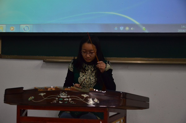 在简单的午餐之后,下午2点,与文新学院的交流活动开始。首先由川大交响乐团首席扬琴演奏濮芷馨为在场同学带来了精心准备的扬琴表演,同学们都听得很专注。随后,活动正式开始。首先,由双方学校的主持人介绍了本次活动的背景,并介绍各自学校的概况,一段四川大学影视协会的微电影《椹椿的三天》让同学们了解到四川大学的办学理想和使命愿景,我校宣传片《交大蓝》也呈献给同学们一个底蕴十足、特质鲜明的西南交大。