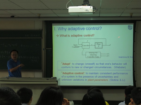 伴随着大家的掌声,我们迎来了马磊教授来为我们开始这场饱含知识的学术讲座。讲座始终以自适应控制系统为中心,并且进行了丰富的拓展,马教授首先以简单易懂的语言向大家详细介绍了自适应控制系统的产生,作用,及工作方式:自适应控制系统存在于我们生活中的方方面面,大到飞机的飞行,轮船的航行,小到一般的家用电器,无时无刻不存在着自适应控制系统。关于自适应控制系统的发展,马教授主要从五个方面展开了讲述:为什么我们的生活中需要自适应控制系统?典型的自适应控制系统都有哪些?如何从失败中学习提高系统的稳定性?重访自校正控制机制以及从自校正到增强学习控制的学习系统。
