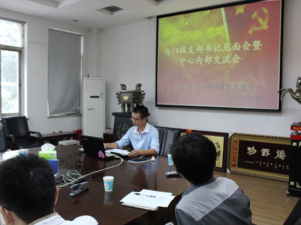 2014年9月29日上午10:00,正妹av 党支部书记见面会在3211召开,出席会议的有正妹av 党员发展中心指导老师王轶老师和党员发展中心各级干部,14级各班党支部书记。