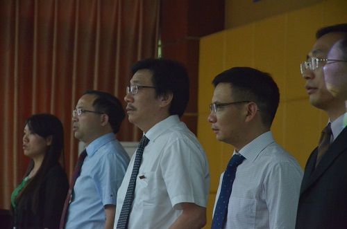 典礼开始前,会场播放了一个由我院研究生自行拍摄的交大短片,这让2014级新生对我校有了进一步的了解和认识。2点半,开学典礼在大家激昂的国歌声中拉开帷幕。