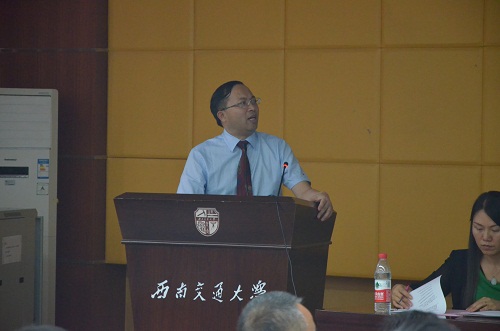 然后,院长高士斌教授讲话。高院长借着对我院现今有关“弹射”、“取消机车变压器”这两个科研目标的介绍,告诫2014级新生“研究生是做研究的”,并强调了坚持诚信、勇于创新在科研道路中的重要性,饱含了对每一位学子能精勤求学的殷切期望。之后何晓琼教授摆事实、举例子,从学术、做人、婚恋三个方面再次提及诚信,提点新生在日后处理学习生活中遇到的问题时要新生多思。