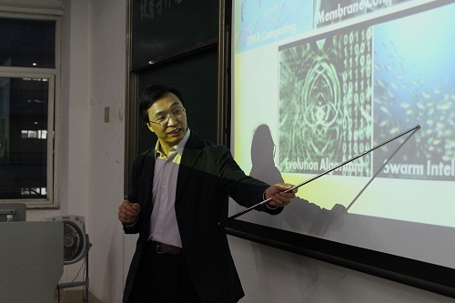 在见面会中,三位教授分别就自己实验室的研究方向和研究成果给同学们做了简单介绍。期间,金教授笑称自己从事的是服务型工作,因为金教授的研究领域为以智能信息处理为核心,实现控制和检测等技术的智能化,最终目的就是服务于人类。而张教授则把实验室的研究成果以视频资料的形式,直观的带给大家,例如智能机器人在电网检测中的应用,以及野外机器人环境感知等。舒教授的方向是电力电子,于是结合PPT给同学们讲解了电力电子在铁路上的应用,以及对以后研究方向的一个展望。