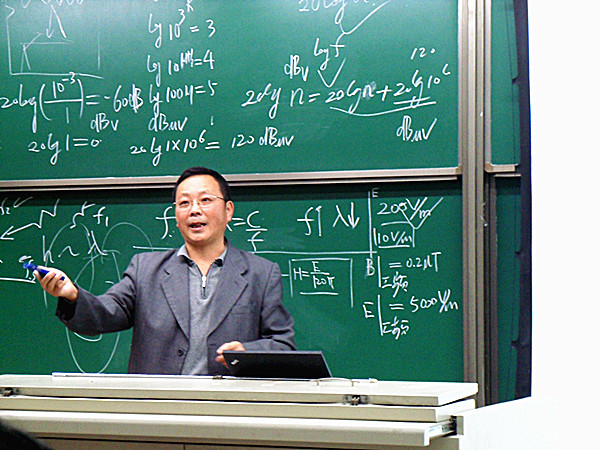 在主持人陈维荣教授宣布报告开始后,朱峰教授上台开始进行报告演讲。本次报告的主要内容围绕主题分为了五个部分:电磁兼容概论、共模干扰和异模干扰、电磁兼容测试基础、电磁兼容标准实施现状及发展评述和电磁兼容干扰诊断与抑制典型案例分析。朱峰教授摆脱枯燥乏味的老式报告手法,而是多次列举贴近生活的微波炉、手机、小区变压器、出租车计价器等与电磁兼容有密切联系的实例,深入浅出,激发同学们浓厚的兴趣,将“电磁兼容的方法、原理及发展评述”这一主题慢慢展开,并使大家了解到电磁兼容渗入日常生活的每个角落,如果处理不当,会对人们工作和生活带来极大危害。在中间休息时间,同学们还踊跃跑去讲台前跟朱峰教授进行了激烈的探讨。