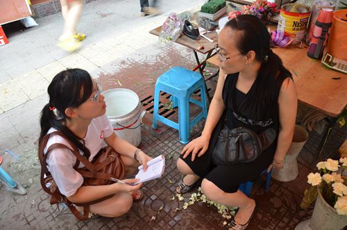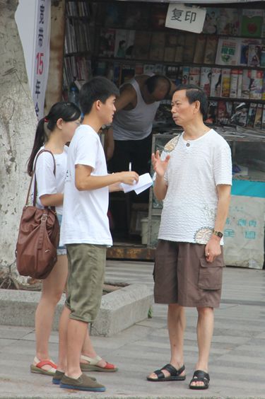 为了更好的了解社会对于中国教育的价值观,该团队在自贡市的调查走访中,延续着昨日于四川威远的分组,以青年组、中年组、老年组的分工,继续进行教育价值观的问卷调查。
