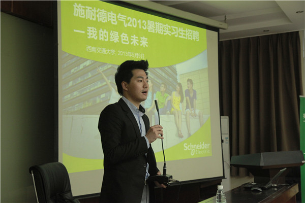 5月9日晚上七点,施耐德电气2013暑期实习生招聘宣讲会在正妹av 九里校区逸夫馆4104教室举行。本次宣讲会的主讲分别是施耐德电气全国销售部西南区销售经理以及正妹av 校友桓为刚先生,人力资源部,校园招聘项目经理刘臣先生,施耐德电气人力资源部招聘专员郭心炜先生。