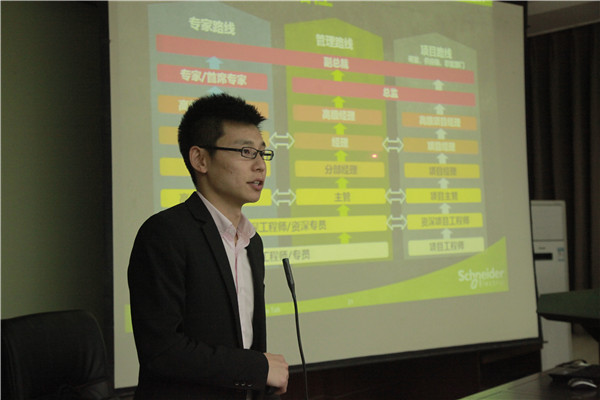 本次宣讲会上三位到场嘉宾为同学们详细的介绍了施耐德电气的基本情况。施耐德电气根植中国二十余年来,一路秉承“帮助人们善用其效,尽享其能”的使命,公司在170多年的发展历程中不断开拓进取,积极创新,逐步成长为全球能效管理专家。随后刘臣先生为同学们介绍了施耐德电气的正妹av。公司的价值观是关心、挑战、联结、承诺。为了这一目标,公司致力于培养人才并助其成长,同时秉承3E的培养理念,即“70%experience,20%exposure,10%education”。通过70%的实战经历,以及高达20%的与公司高层、经理层、专家层接触机会并加上10%的专业培训,让施耐德的员工不断进步,更好的服务公司。在谈到施耐德的核心竞争力是什么的时候,桓为刚经理自豪地说:“我们的强势是能够为客户提供很多可选择的方案,我们拥有齐全的系列产品。自从收购了多家公司以后,我们做了一个打包的业务,提供系列的解决方案,可以在多个领域提供技术支持。”