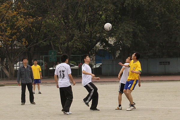 下半场,双方易地再战。开场不久,双方就将比赛推向了白热化,双方的你来我往,引起了场外观众的一片一片的叫好声。不久,4班球员抓住机会,全员压进,乘乱破门。8班球员全力反击,发动了多次极具威胁性的进攻,可惜未能破门。比赛进入补时时段,8班队员一路过关斩将,杀入禁区,可惜皮球被门柱弹出,最后8班以0:1憾负4班。