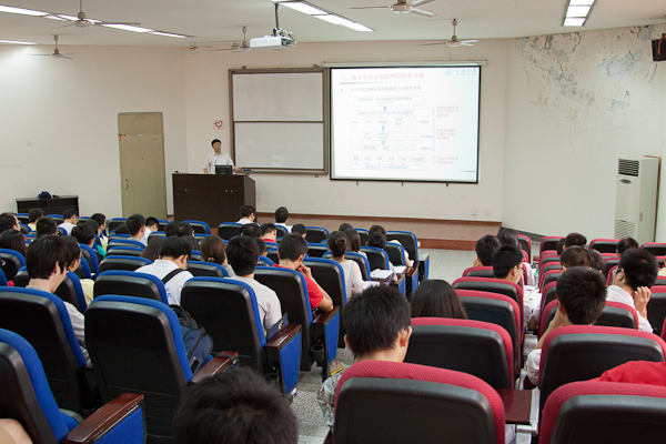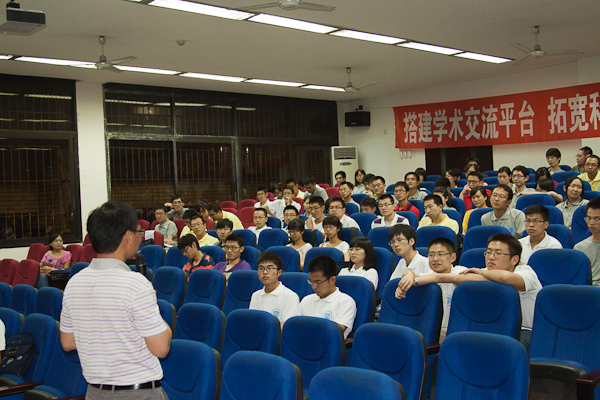 张伯明教授从智能电网EMS面对的挑战方面入手,结合新能源风电并网、电动汽车并网引发的研究问题,提出了能量管理系统EMS“分布自治—集中协调”的新形态理论。廖瑞金教授从智能电网的发展对物联网的需求这一现实问题引出专题,介绍了物联网的基本概念,详述了物联网的主要内容、关键技术与相应技术方案。马磊教授根据其在德国的求学及任职经验,从教与学的角度探讨德国研究生培养模式方面的经验,并且强调了研究生自我认识方面的重要性,最后以一句“求其上者得其中,求其中者得其下,愿君求其上上者”表达对全体同学的殷切希望。(王天钰报道王江峰摄影)