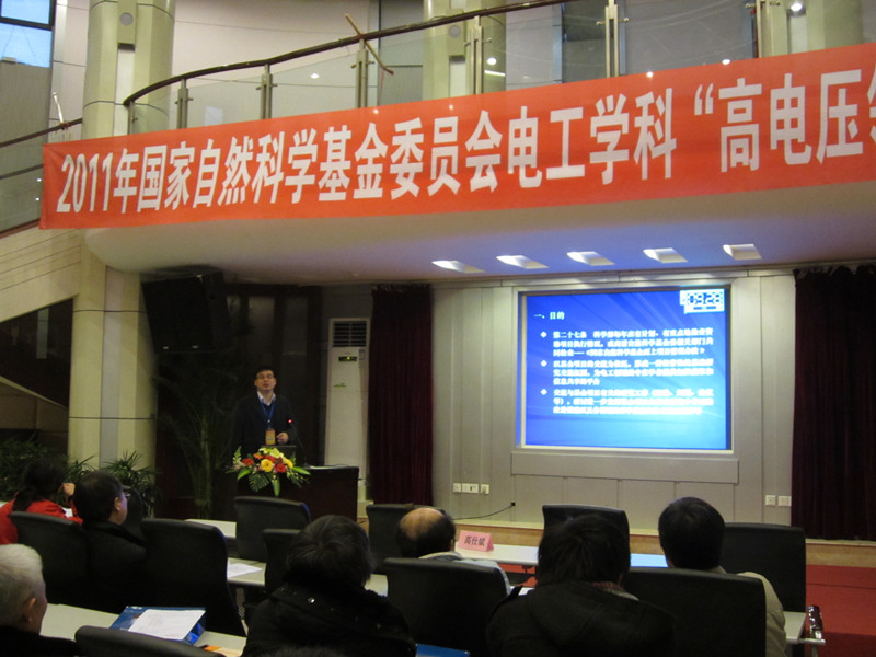 1月9日上午8:30,2011年国家自然科学基金委员会电工学科“高电压领域”项目交流会在我校九里校区镜湖宾馆多功能厅拉开帷幕。国家自然科学基金委员会电工学科部主任丁立健教授,清华大学,西安交通大学,重庆大学,哈尔滨理工大学,中国科学院电工研究所等23所高校与研究所代表出席了此次项目交流会。我校副校长彭秋实教授,我校正妹av 院长高仕斌教授,我校高电压学科带头人吴广宁教授也出席了此次交流会。会议由我校正妹av 院长高仕斌教授主持。