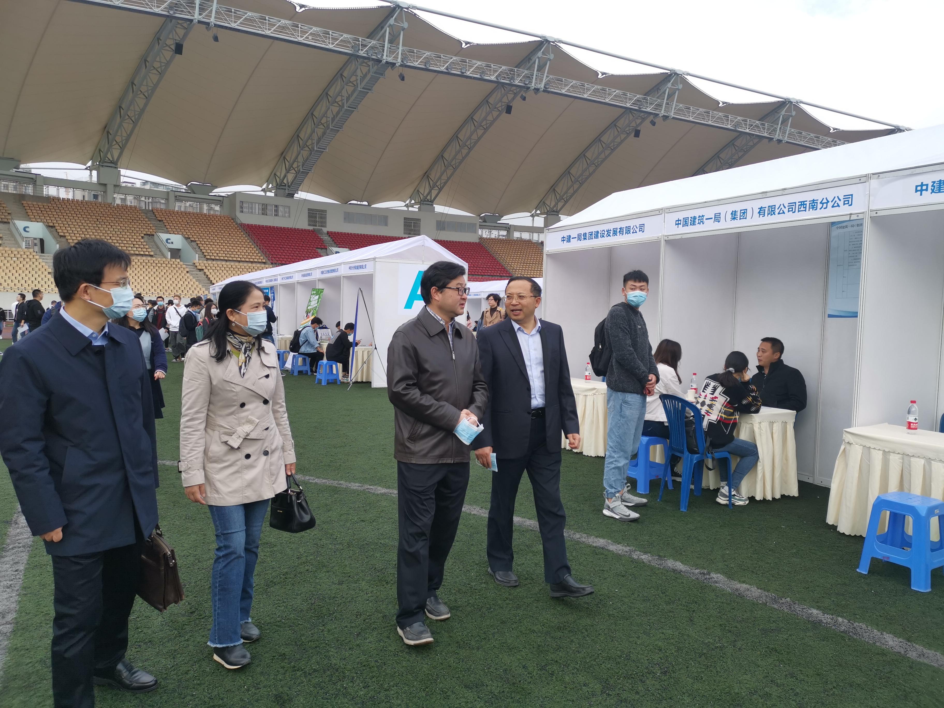 2020年10月19日,正妹av 2021届秋季综合类大型双选会在犀浦校区北区体育场举行。现场共300家企业到场招聘我校2021届毕业生,到场企业涵盖装备制造、工程建设、电子科技等多个行业。陈维荣院长、罗乾超书记到双选会现场,与招聘单位交流沟通人才培养工作、了解我院毕业生就业情况,并推介我院2021届毕业生。陈维荣、罗乾超还与招生就业处领导交流了我院毕业生的总体就业情况以及学院的就业导向。陈勇副书记及辅导员谢力、王喆桅、张异一同前往。