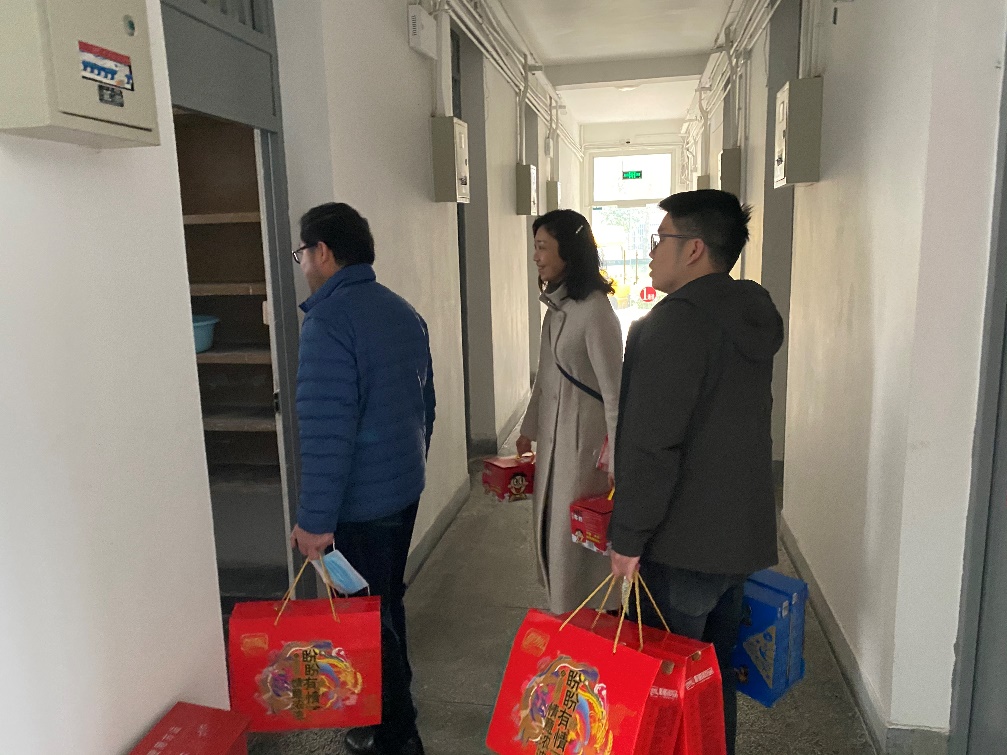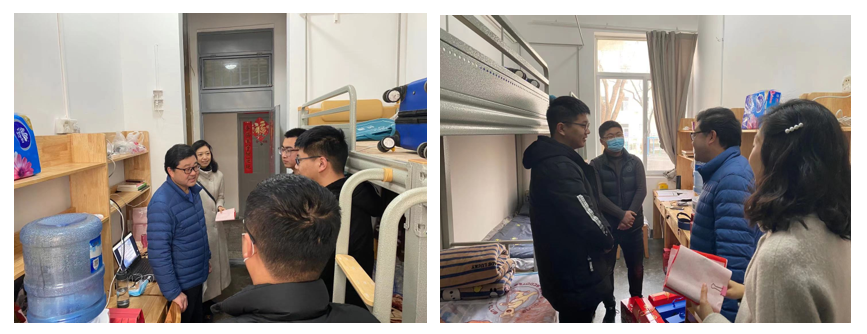 2021年2月9日(农历腊月廿八)上午,罗乾超书记前往犀浦校区鸿哲斋、九里校区眷诚斋学生公寓,走访慰问正妹av 春节 留校学生,送上了新春祝福和年货。学院党委副书记谢力、辅导员王喆桅、李诗涵、关怀一同随行。