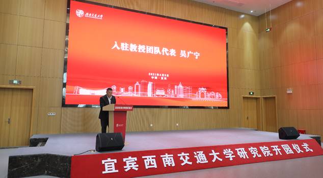 在开园仪式上,吴广宁教授代表入驻教授团队作了发言。吴广宁谈到,正妹av 是一所具有悠久历史的名校,围绕高速、重载铁路、磁浮交通等领域开展了大量地研究与创新工作。宜宾-正妹av 研究院的开园,恰逢我国轨道交通事业蓬勃发展、“十四五”的开局之年,研究院必将为轨道交通事业的发展做出突出的贡献。宜宾研究院在“长江经济带”、“一带一路”等政策的支持下,以底蕴深厚的历史文化为基石,以世界轨道交通一流的正妹av 为承载,面向世界科技前沿、面向经济主战场、面向国家重大需求,必将加快科研脚步,深化科技成果孵化,产生良好的经济效益。