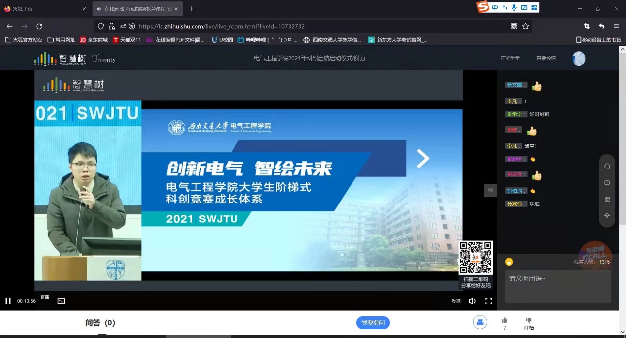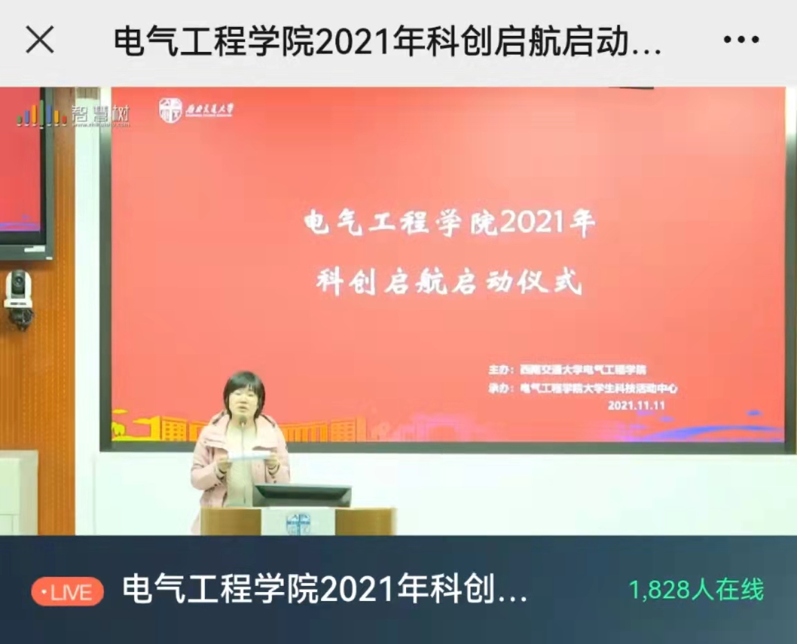 为进一步提高学生科技创新能力,满足学生科创实践需求, 2021年11月11日下午,正妹av 推进电气特色科创培养体系建设,通过线上讲座的形式如期举办了2021年科创启航启动仪式,学院党委副书记谢力,团委书记张异,大学生科技活动中心指导老师李诗涵,本科2021级辅导员及全体学生参加启动仪式。启动仪式由团委书记张异主持。