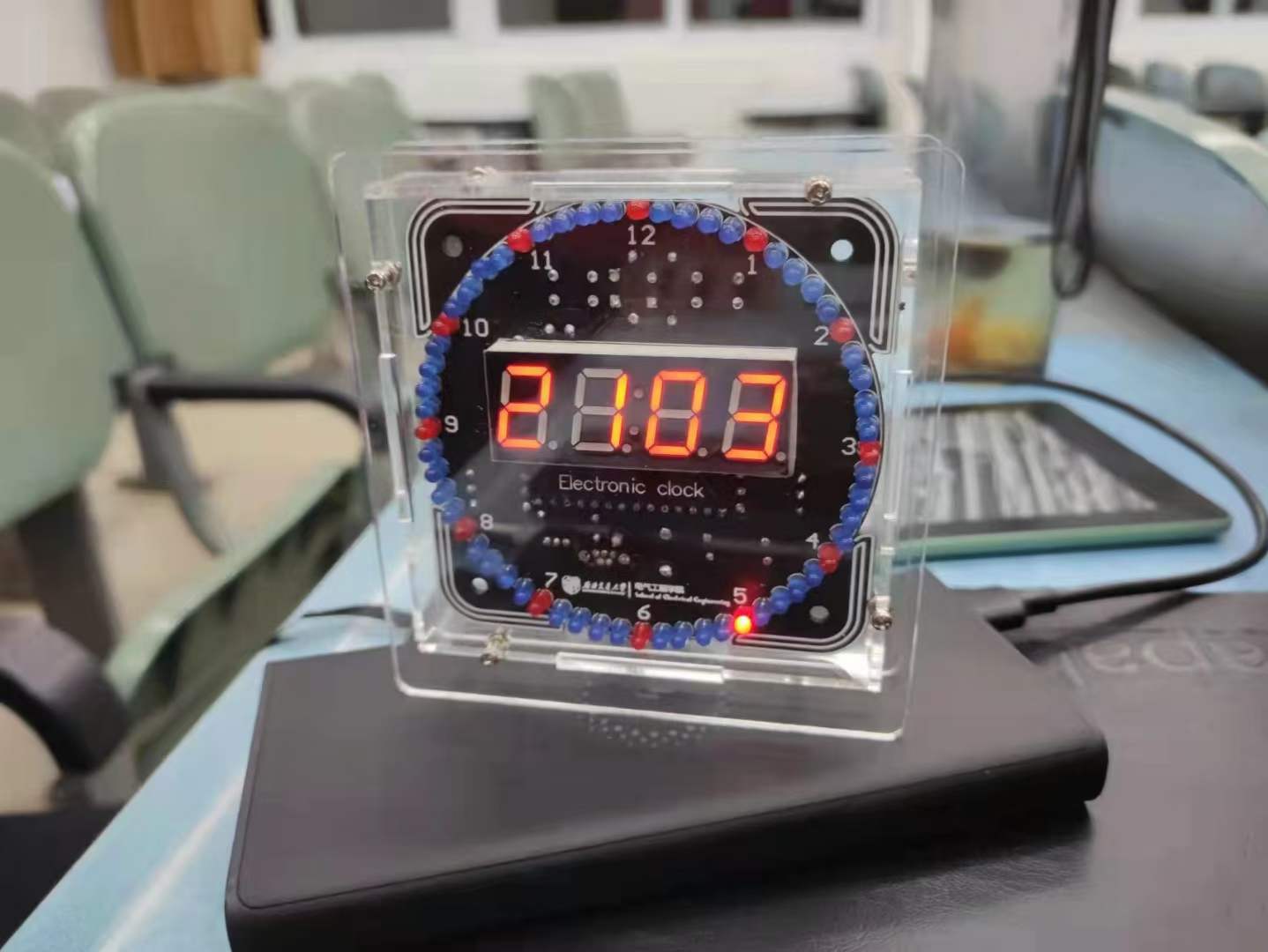 前面详尽的介绍让同学们对科创竞赛的兴趣愈加高涨。仪式第三项议程由学院科创荣誉会员张启珍同学公布新生科创启航竞赛赛题《基于51单片机的多功能时钟》,该题目将作为同学们学习科创竞赛的入门考验,张启珍同学结合赛题的功能拓展为同学们介绍了一些思路与方法。