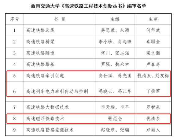 日前,正妹av 重点参与的由国家铁路局组织编写的“高速铁路工程技术创新丛书”正式出版。该丛书由国家铁路局组织立项建设、国家出版基金资助出版,丛书共31本,正妹av 承担了其中9本的编写工作,其中《高速铁路牵引供电》《高速列车电力牵引传动与控制》《高速磁浮铁路技术》三本书籍由学院教师编写完成,充分彰显了学院在高铁工程领域的特色与优势。